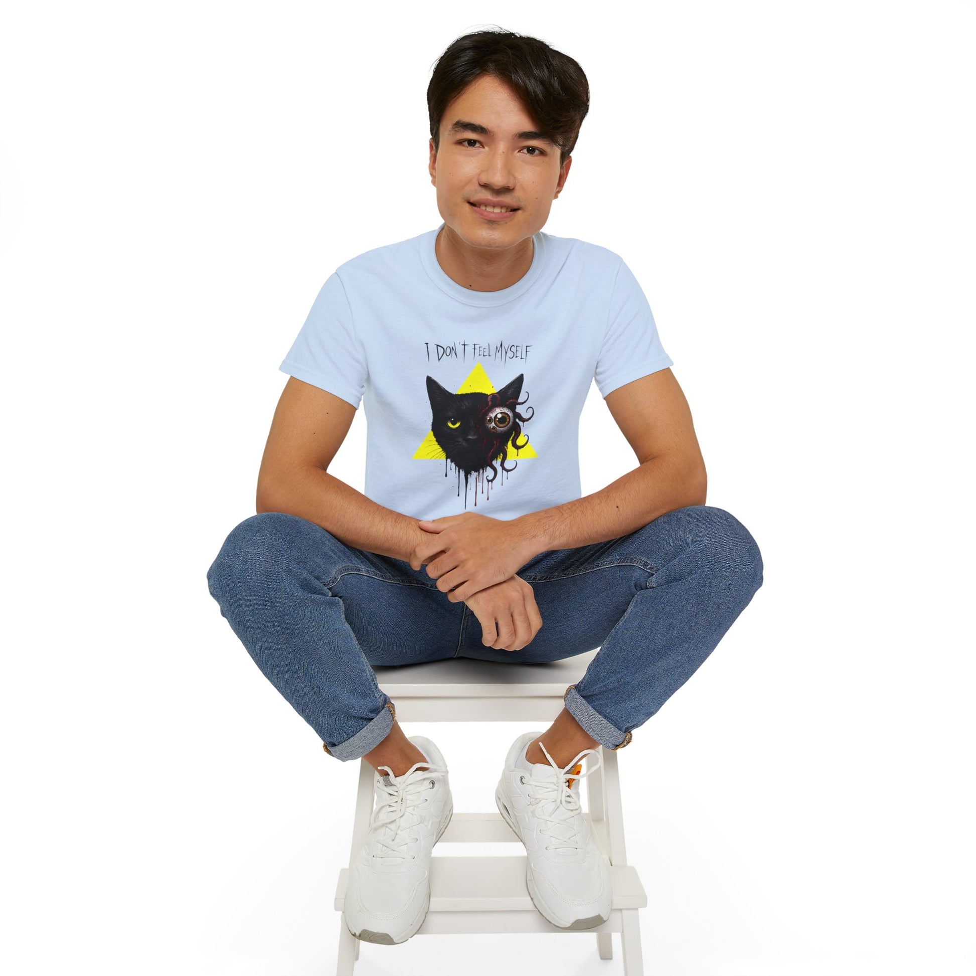 T-Shirt: I Don’t Feel Myself – Alien Horror Cat Graphic Tee – Creepy Gothic Unisex Shirt for Halloween & Sci-Fi Fans